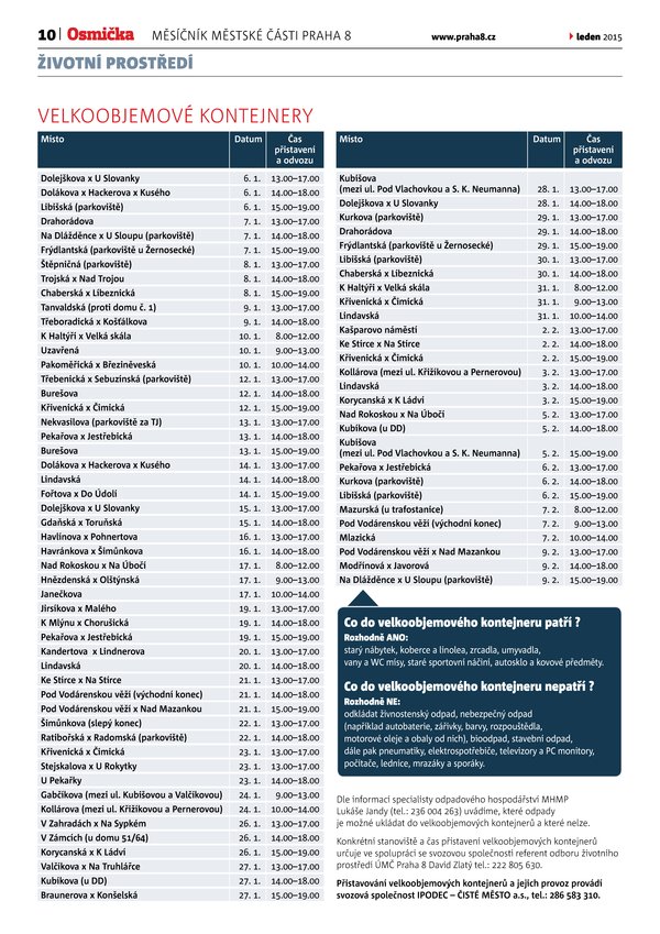 Kompletní seznam rozmístění velkoobjemových kontejnerů