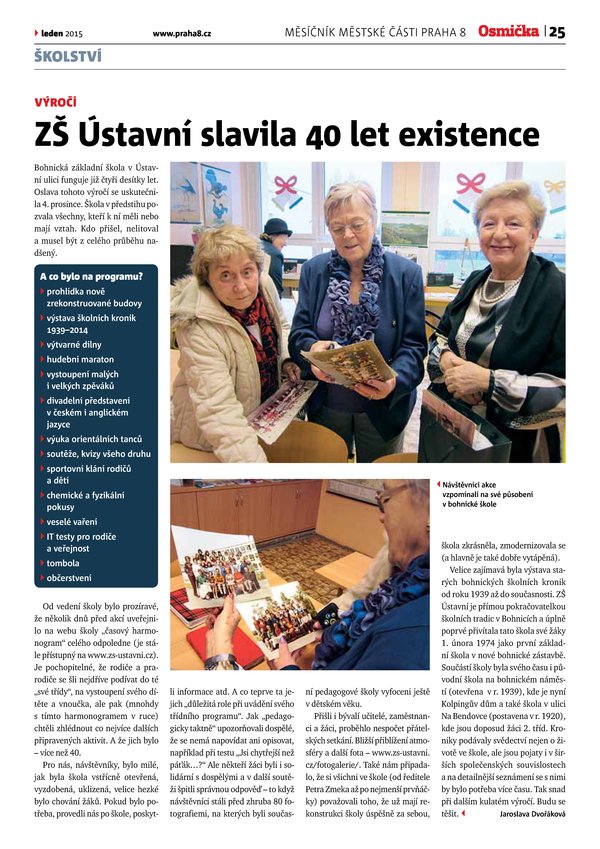Základní škola Ústavní si připomněla čtyřicet let své činnosti