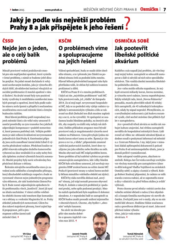Jaký je podle vás největší problém Prahy 8 a jak přispějete k jeho řešení?