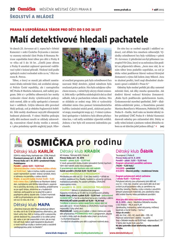 Tábor pro děti z Prahy 8: Malí detektivové hledali pachatele