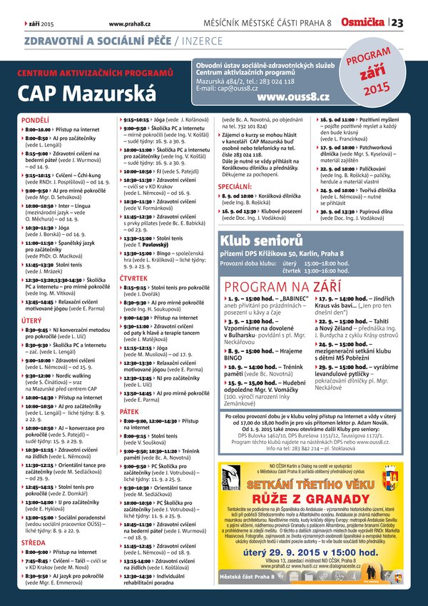 Výběr z nabídek akcí nejen pro občany Prahy 8
