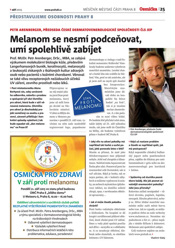 Rozhovor s MUDr. Petrem Arenbergerem nejen o melanomu