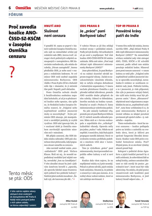 Proč zavedla koalice ANO-ČSSD-SZ-KSČM v časopise Osmička cenzuru?