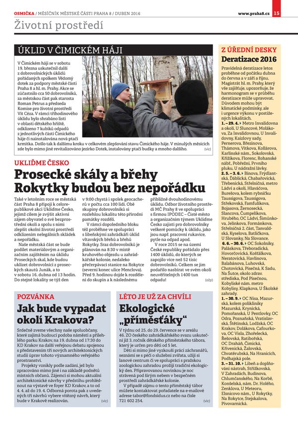 Ukliďme Česko, ukliďme Prosecké skály a břehy Rokytky