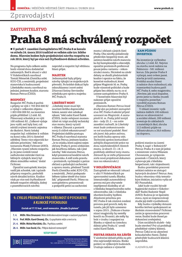 Zastupitelstvo schválilo rozpočet a projednalo Libeňský most