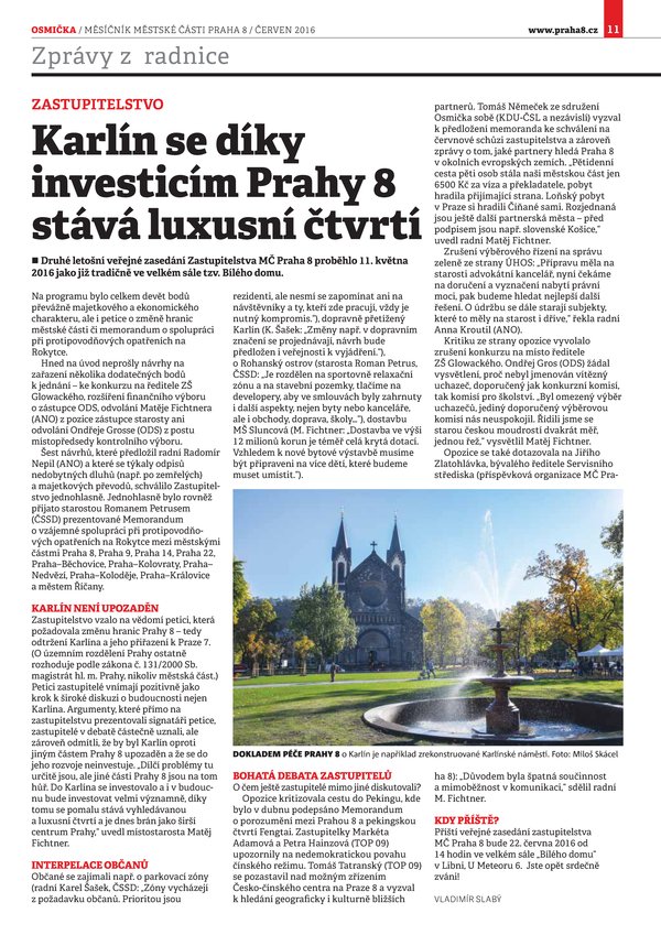 Zastupitelstvo: Karlín se díky investicím stává luxusní čtvrtí