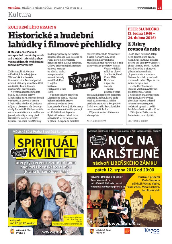 Kulturní léto Prahy 8 přinese historické, hudební i filmové lahůdky
