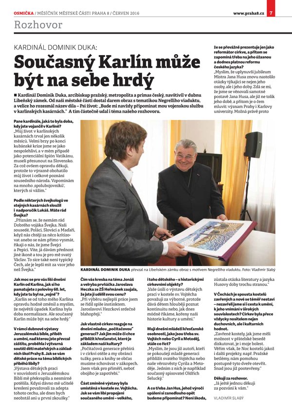 Kardinál Dominik Duka: Současný Karlín může být na sebe hrdý