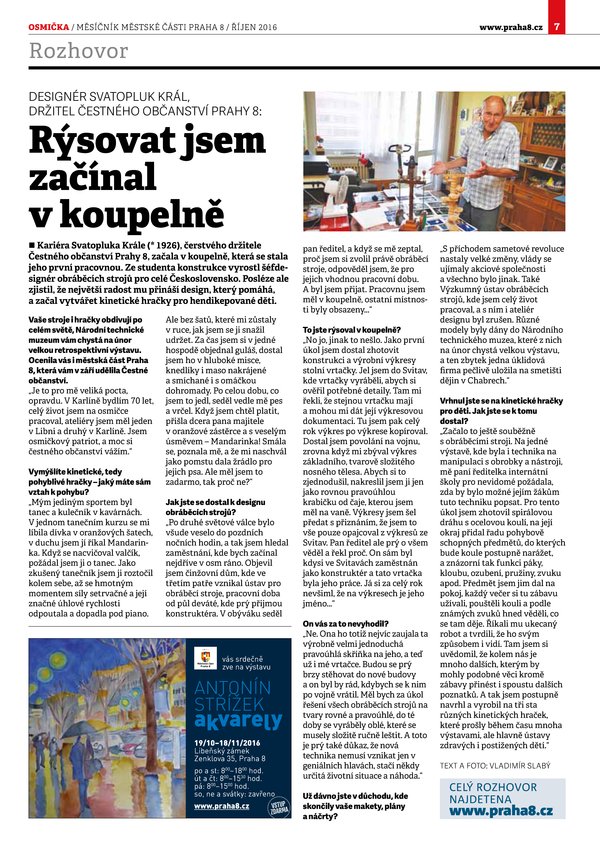 Rýsovat jsem začínal v koupelně, říká Svatopluk Král, čestný občan Prahy 8