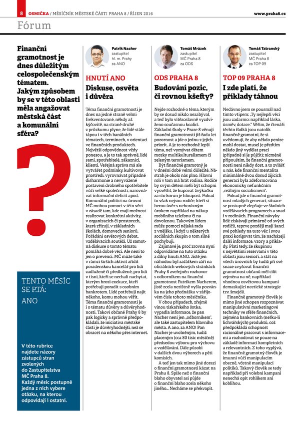 Finanční gramotnost je dnes důležitým celospolečenským tématem. Jakým způsobem by se v této oblasti měla angažovat městská část a komunální sféra?