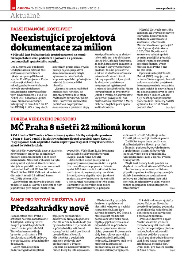 Na údržbě veřejného prostoru Praha 8 ušetří 22 milionů korun