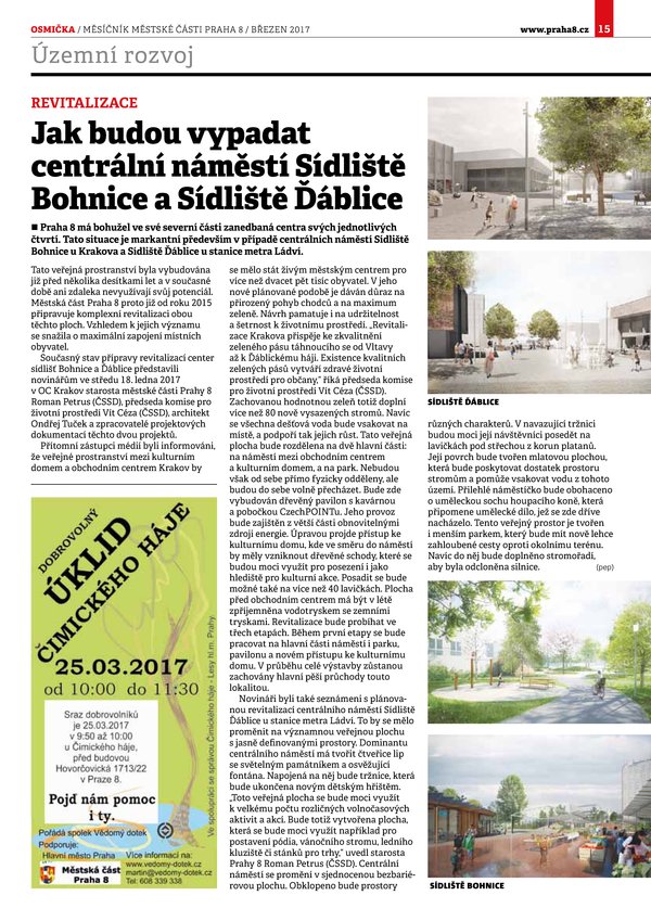 Jak budou vypadat centrální náměstí Sídliště Bohnice a Sídliště Ďáblice