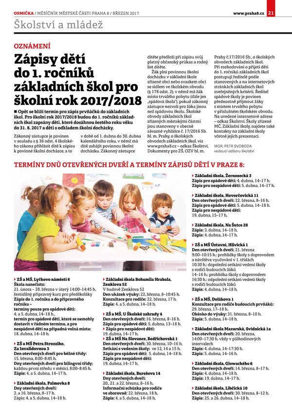 Zápisy dětí do 1. ročníků základních škol pro školní rok 2017/2018