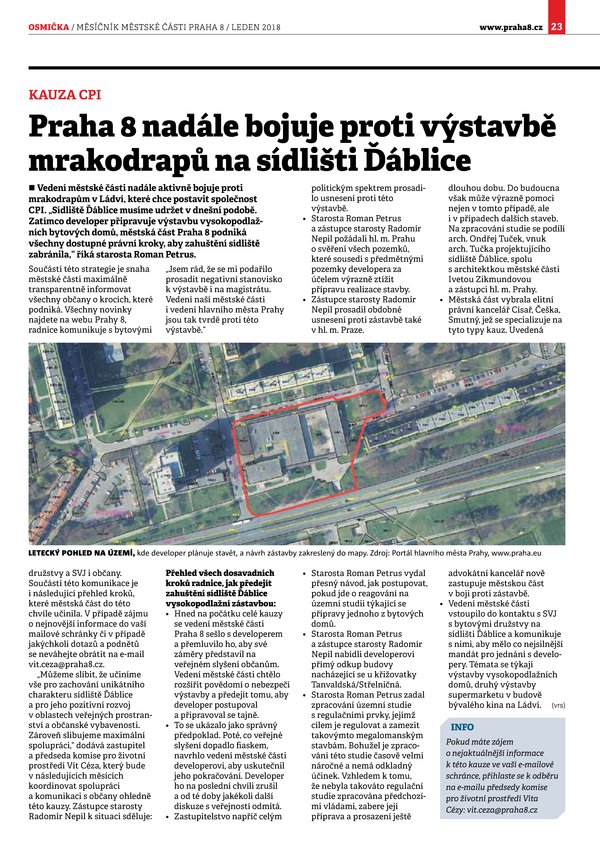 Praha 8 nadále bojuje proti výstavbě mrakodrapů na sídlišti Ďáblice