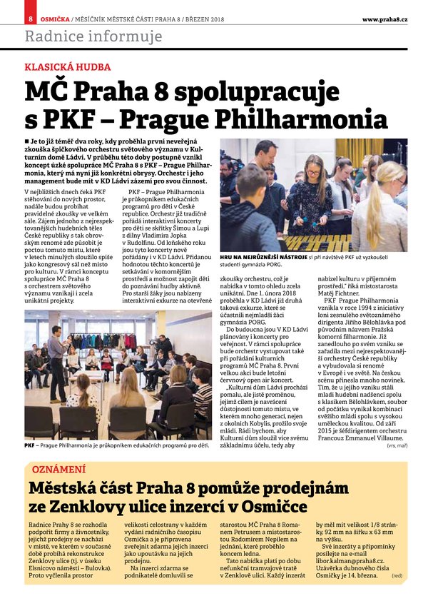MČ Praha 8 spolupracuje s PKF – Prague Philharmonia