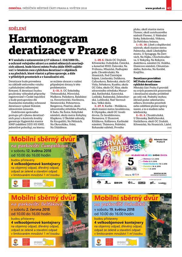 Harmonogram deratizace v Praze 8