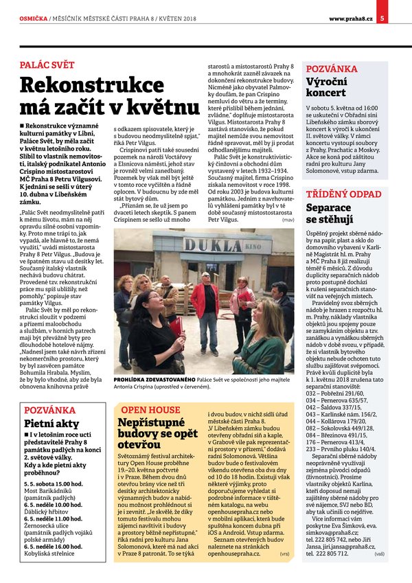 Rekonstrukce má začít v květnu