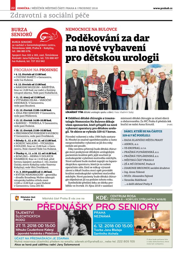 Poděkování za dar na nové vybavení pro dětskou urologii