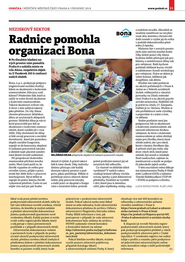 Radnice pomohla organizaci Bona