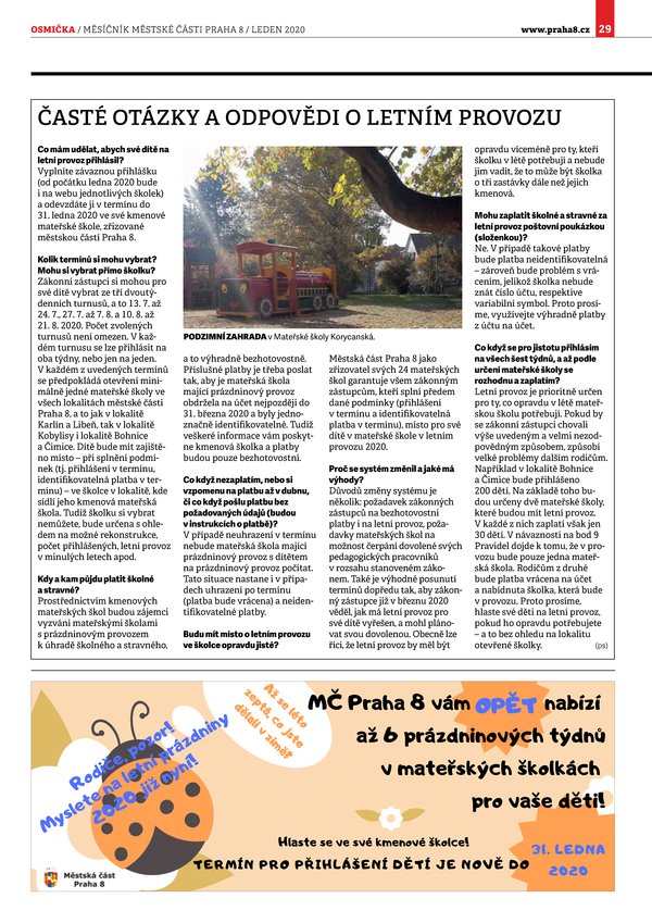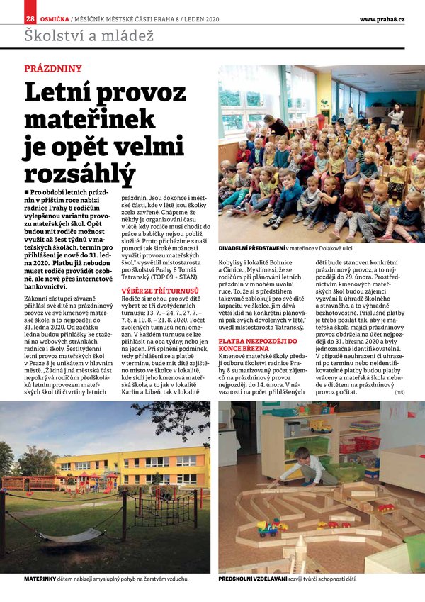 Letní provoz mateřinek je opět velmi rozsáhlý