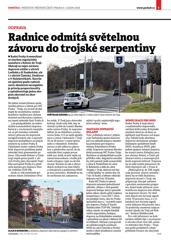 Radnice odmítá světelnou závoru do trojské serpentiny