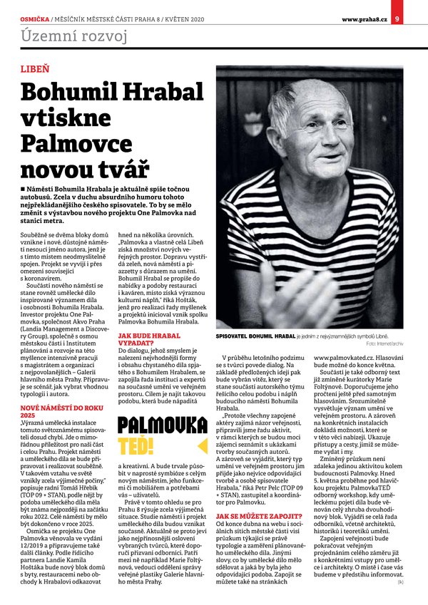 Bohumil Hrabal vtiskne Palmovce novou tvář